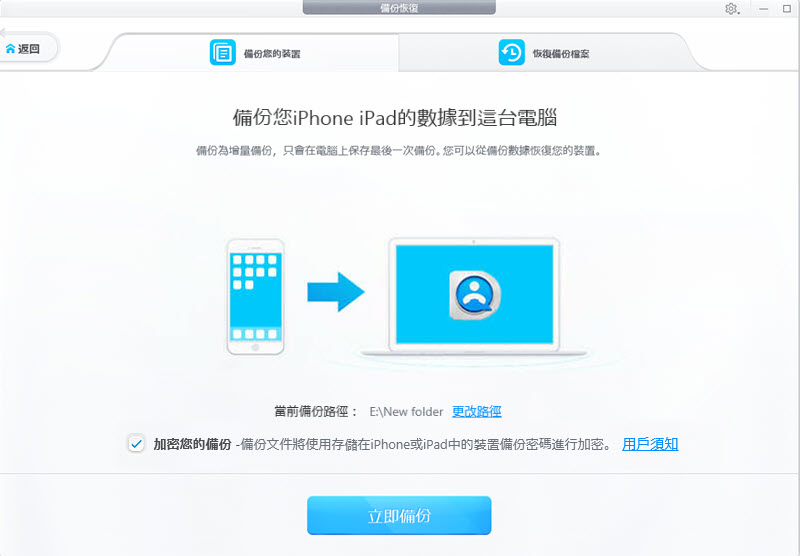 將 iPhone iPad 檔案備份至 PC/Mac/外接硬碟,隨時還原,杜絕裝置意外損壞後數據無法找回的困擾。