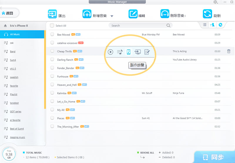 匯出 iPhone 音樂,或者將音樂匯入 iPhone;支援鈴聲製作;智慧轉換不同音樂格式為MP3,音樂播放不分裝置;彈性管理、刪除、編輯 iPhone/iPad 音樂與播放表單。