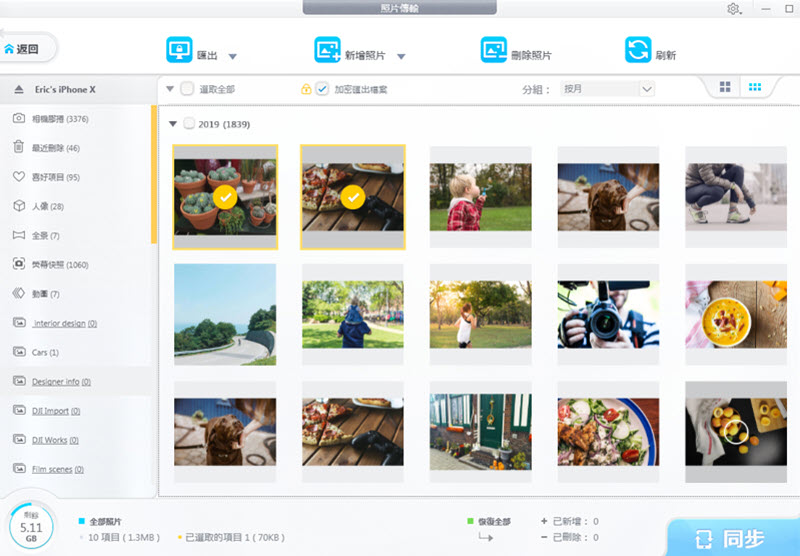 可匯出原始照片與已編修過的照片。支援 HEIC 轉 JPG,或者按批次刪掉照片。