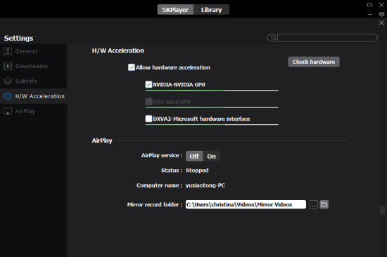 2. Relatively wide hardware acceleration mode compatibility – to decode and render high resolution videos – makes 5KPlayer an ideal subject as a free HD video player: modes available to be enabled include Intel Quick Sync Video Generation 1,2,3,4 (Sandy Bridge, Ivy Bridge, Haswell and Broadwell), NVIDIA CUDA (part of NVIDIA CUVID decoding technology), and Microsoft DXVA 2.0.
